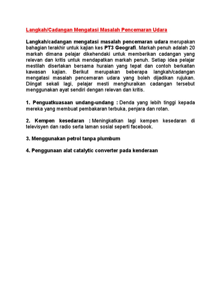 Langkah Langkah Mengurangkan Pencemaran Udara Geografi Pt3 2018