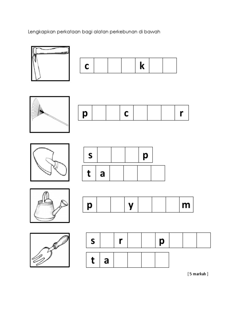 Lembaran Kerja Mengenal Fungsi Alatan Perkebunan. Lembaran kerja peralatan dapur pdf. Alatan dan bahan perkebunan interactive and downloadable worksheets.